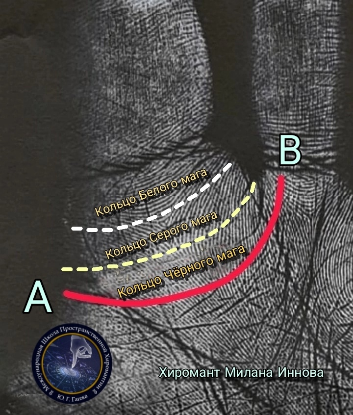 🖍Это одна из любимых тем среди эзотериков, т.к колечко это наделяет обладателя руки более глубокими способностями в сферах магии. Чем четче, чище и глубже данное кольцо, тем ярче и способности, тем больше человек их реализует, если оно фрагментарное, то необходимо определить для себя интерес в данной сфере и развивать способности. 🖍Также важно по реализации способностей, на какой руке оно расположено, на ведущей/нет или на обоих. 🖍Ещё отмечено, что обладателю руки с таким кольцом присущи качества зависти, ревности, резкой вспышки гнева и они чаще могут быть злопамятны. Но это не значит, что эти качества им нельзя побороть, это значит, что в зависимости от глубины и четкости линии, они могут как просыпаться переодически, так и очень часто быть присущи обладателю руки. 🔵В любом случае, зная как работать с этим и имея на то желание (в данном случае желание это не всегда присутствует), можно негативные качества снизить и направить эту энергию в более благоприятное русло. 🔵Вс