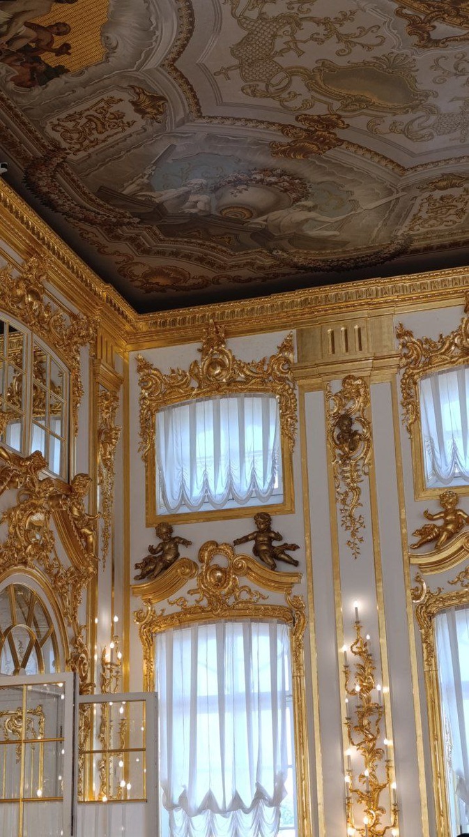 Я не в восторге от Питера. Нет, не так. Я не в восторге от своих ощущений от Питера. Да, так правильнее. Ещё до поездки, я прожила всё, что должна была прожить именно сейчас, именно в поездке. Да, я вижу всю красоту, мощь, историю, величие этого города, но нигде не ёкает. К чему это фото? 🔝 Вот на них прорвало. Заходим в очередную "прихожую" Елизаветы (Екатерининский дворец в Царском селе), ну красиво, да, всё в золоте. И тут я вижу их. Они выделяются по цвету и (бляха муха) энергетике. В горле застыл ком. Гид в правом ухе вещает: "Это всё, что осталось от этого зала после обстрела и пожара, остальная отделка появилась в послевоенное время". Меня это так тронуло... Всё что осталось... Гид заметила мои налившиеся влагой, широко распахнутые глаза и до конца экскурсии мы сохраняли зрительный контакт. И знаете, хожу я по дворцу, по парку и, кажется мне, что я жила в такой обстановке, но скорее всего работала, возможно даже в саду. Если вы скажете "да ладно, бредишь", я соглашусь,
