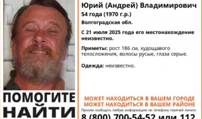 54-летний Юрий (Андрей) Созинов не выходит на связь с 21 июля 2025 года. Как сообщает ПСО «ЛизаАлерт», ведутся поиски Юрия (Андрея) Созинова, 1970 года рождения. Местонахождение мужчины неизвестно с 21 июля 2025 года. Приметы пропавшего: рост 186 см, худощавое телосложение, русые волосы, серые глаза. Во что был одет мужчина в день исчезновения – неизвестно. Всех, кто располагает информацией о местонахождении Юрия (Андрея) Созинова, просят сообщить по телефонам: 8 800 700 54 52 или 112.
