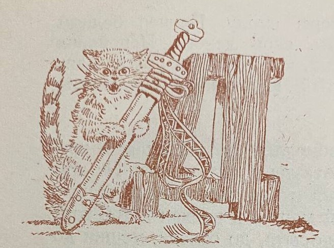 Взялись парень со львом за дело. Немало им пришлось повозиться, шутка ли этакий черт! По правде сказать, они его больше хитростью одолели, нежели силою: лев к черту сзади подкрался, вскочил ему на загривок и опрокинул навзничь. А парень с саблей тут как тут, рубит, куда попало. Думал велика ли мудрость лежачего зарубить! Ан, не так-то оно и просто: черт ведь огнем плюется, вот в чем дело-то. Однако все же победили они черта. Пришел парень к королю просить награду - зеркало о четырех винтиках. Нахмурился король: как раз зеркало ему подавай! Но перечить не стал уговор дороже денег. Пошел парень дальше по свету бродить, гордый-прегордый: в руках зеркальце, по одну сторону лев шагает, по другую - кот, сбоку сабелька острая загляденье!