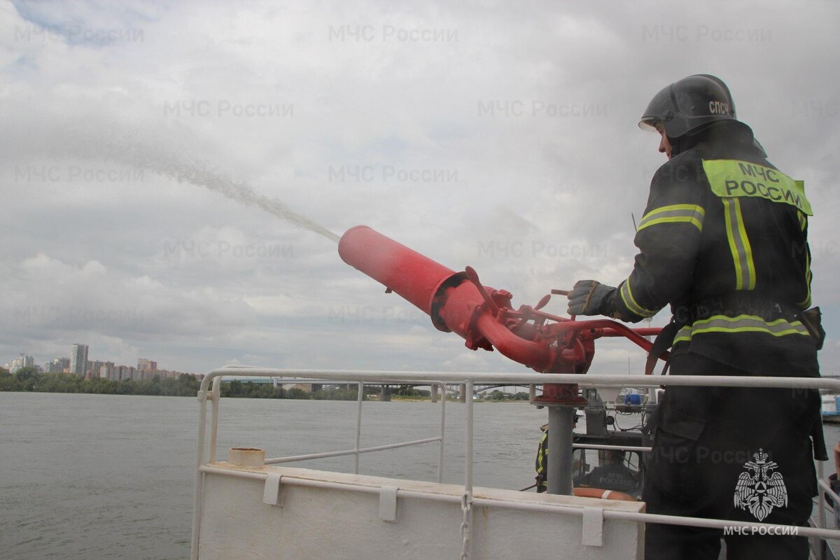 Спасатели МЧС провели крупные учения по тушению пожара на речном судне в Новосибирске