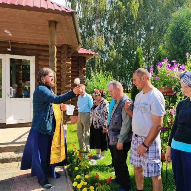 Настоятель храма святителя Николая Чудотворца г. Червеня иеромонах Гедеон (Фоменко) в великий праздник Преображения Господня, именуемый в народе ещё как Яблочный Спас, 19 августа 2025 года совершил освящение плодов в храме преподобного Амфилохия Почаевского при Червенском социальном пансионате «Мир доброты».