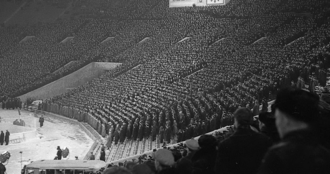 Хоккей с шайбой под открытым небом давно уже считается настоящей экзотикой, когда на лёд выходят мастера-профессионалы. В этом случае обычный хоккейный матч превращается в масштабный праздник с элементами яркого шоу и именуется «Зимней классикой». Лишь некоторые детские, юношеские и любительские команды в наши дни всё ещё устраивают сражения на уличных «коробках». В СССР канадский хоккей получил окончательную «прописку» зимой 1946 года. До этого случались робкие попытки освоить новый, заокеанский вид игры, а первопроходцами в этом деле стали энтузиасты-студенты из Института физкультуры имени Лесгафта в Ленинграде. В первое десятилетие шайбисты играли на футбольных стадионах, поэтому зрители проводили на морозе много времени, согреваясь горячим чаем, а иногда и тем, что покрепче. Интерес болельщиков к заокеанской забаве в СССР был огромным. В Москве игры проходили на стадионе «Динамо», в Ленинграде площадку соорудили на стадионе имени С.М.Кирова, который ввели в эксплуатацию в 1950 году. До появления московских «Лужников» именно ленинградский стадион считался самым вместительным в Советском Союзе. Традиционные русские морозы совершенно не пугали болельщиков, готовых простоять на ногах в лютую стужу не один час. Мужчины того поколения приносили с собой, конечно, крепкие напитки, употребляя которые, обычно закусывали снегом. Благо, снега зимой было предостаточно. «Игрой в снежки» называли болельщики такой способ соблюдать температурный баланс в организме. Тяжелее приходилось самим хоккеистам, хотя, практически у всех имелся богатый опыт игры на морозе в хоккей с мячом. На заре становления канадского хоккея смены игроков проводились так редко, что вторая пятёрка очень долго ждала своего выхода на лёд и за несколько минут ожидания запасные игроки попросту замерзали. Так и сидели они на деревянной лавке, укутавшись в тёплые одеяла. Правда, и это не всегда им помогало. Поговаривали, будто некоторые хоккеисты «для сугрева» употребляли спиртное прямо во время матча. Молва даже приписывала постоянные возлияния в перерывах между игровыми сменами фронтовику Николаю Сологубову и его партнёру по звену Ивану Трегубову. Однако, всё это не более, чем нелепые домыслы, не имеющие под собой правдивой почвы. К походу на хоккей зрители готовились так же, как и к посещению театра. Мужчины до блеска начищали свои ботинки, а дамы облачались в самые дорогие для себя наряды.