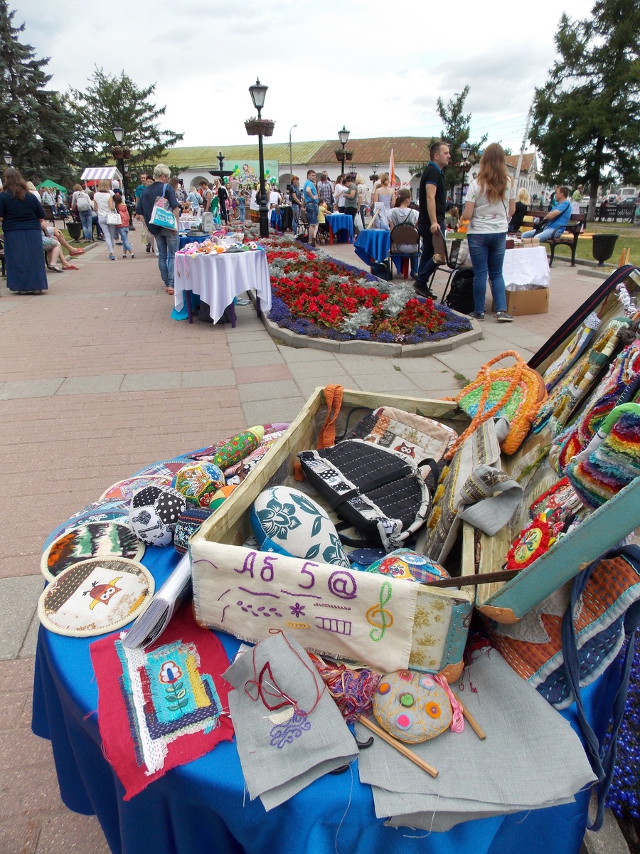 Это как проведение мастер-класса. Нашла давнее фото, ярмарка в центре у фонтана.