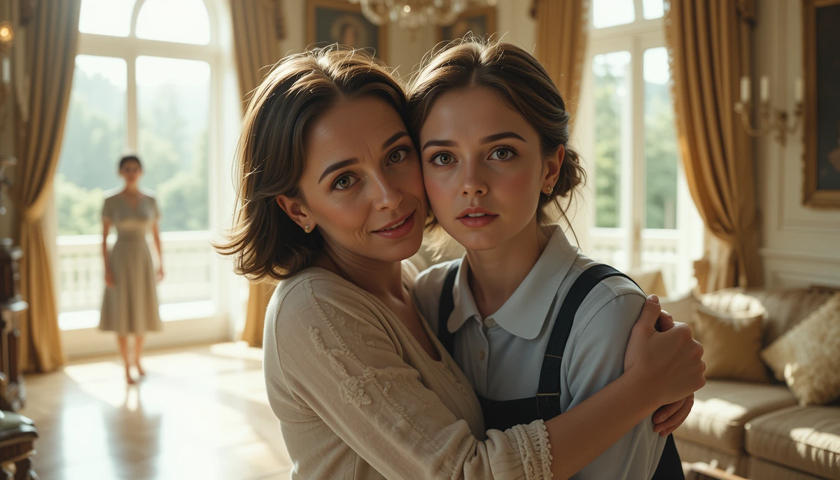 Развязка наступила через неделю. Этот день я не забуду никогда. С самого утра Тамара Ивановна была как на иголках. Она заставила меня перемыть весь дом заново, хотя он и так сверкал чистотой. «Сегодня приезжает хозяйка, – объявила она, и в ее голосе звучали металлические нотки. – Ненадолго, всего на пару дней, решить какие-то дела. Ты должна быть паинькой. Улыбайся, кивай, и ни слова лишнего, ты поняла меня?» Я молча кивнула. Внутри у меня все похолодело от страха и предвкушения. Я должна была увидеть ее. Мою маму. Я надела самое приличное из своих платьев – старенькое, но чистое. Спрятала в карман ту самую первую фотографию, которую нашла. Это был мой единственный козырь, мое доказательство. Около полудня к дому подъехал черный блестящий автомобиль. Дверца открылась, и из нее вышла она. Женщина с портрета. В жизни она была еще красивее, но такой уставшей. Глубокие тени залегли под ее глазами, а в уголках губ застыла горечь. Она была одета в элегантный светлый костюм, но держалась так, будто он был ей велик. Тамара Ивановна бросилась к ней навстречу, расплываясь в самой угодливой улыбке, на какую была способна. «Леночка Владимировна, голубушка! Как долетели? Как вы прекрасно выглядите!» – защебетала она. Женщина устало улыбнулась в ответ: «Здравствуй, Тамара. Спасибо, все нормально». Она медленно обвела взглядом свой дом, и ее лицо стало еще печальнее. «Ну, вот, познакомьтесь, – свекровь подтолкнула меня вперед. – Это Анечка, моя сноха. Помогает мне тут немного, пока вас нет». Женщина перевела взгляд на меня. Наши глаза встретились. Время остановилось. Я видела, как ее вежливая маска начала трескаться. Она смотрела на меня – на мои глаза, на волосы, а потом ее взгляд остановился на моем лбу, на том месте, где под челкой прятался тонкий белый шрам. Ее лицо изменилось. Губы дрогнули. Она сделала шаг ко мне, потом еще один. Она протянула руку и дрожащими пальцами коснулась моего шрама. «Этот шрам… – прошептала она, и ее голос сорвался. – Нет… не может быть…» Тамара Ивановна попыталась вмешаться: «Леночка, вы устали с дороги, пойдемте в дом, я заварила ваш любимый чай…» Но женщина ее не слышала. Она смотрела мне в лицо, и в ее огромных глазах медленно разгоралось узнавание, смешанное с ужасом и надеждой. «Как… как тебя зовут?» – спросила она шепотом. «Аня», – выдавила я из себя, а сердце в груди билось так, что дышать было невозможно. И тогда я достала из кармана фотографию и протянула ей. Она взяла ее. Посмотрела на снимок, потом снова на меня. И ее лицо исказилось от боли. Она зарыдала. Некрасиво, навзрыд, сотрясаясь всем телом, как плачут люди, потерявшие все. Она упала на колени передо мной, обхватила мои ноги и, задыхаясь от слез, проговорила фразу, которая перевернула мой мир: «Доченька… Леночка моя… Я искала тебя тридцать лет…»