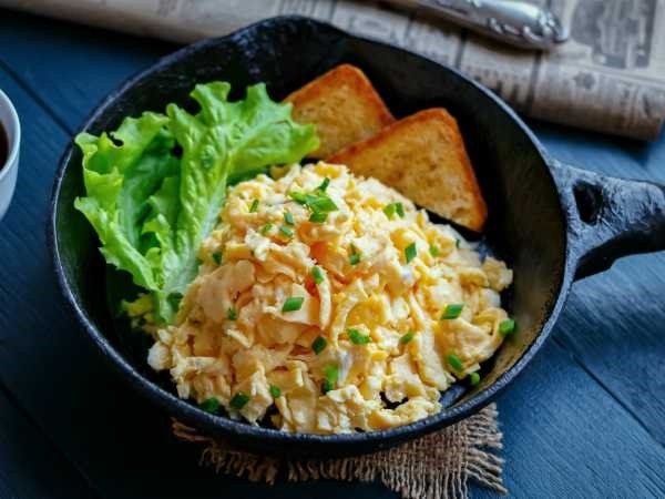 Нам понадобиться: Яйцо куриное – 4 шт. Сливочное масло – 1-2 ст.л. Сметана – 1 ст.л. (по желанию) Зеленый лук – 2-3 стебля Соль – по вкусу Для приготовления яиц-скрэмбл разбейте в миску желаемое количество яиц. Стандартная порция – 2 яйца на одного человека. Тщательно перемешайте яйца вилкой. Пышная пена здесь не нужна, главное, очень хорошо смешать желтки и белки, чтобы получить однородную смесь. Всегда взбивайте яйца непосредственно перед приготовлением. Так яичная смесь будет обогащена кислородом и на вкус блюдо получится более воздушным и вкусным. На небольшом огне растопите сливочное масло и влейте яичную смесь. Подождите несколько секунд, чтобы смесь слегка схватилась, а затем начинайте аккуратно двигать смесь лопаткой, как бы рисуя восьмерку. Всегда готовьте блюдо на маленьком огне, добавляйте соль только в конце приготовления и выключайте огонь за несколько секунд до того, как яичная смесь будет полностью готова. Масса должна оставаться немного влажной и блестящей. Это ключевые