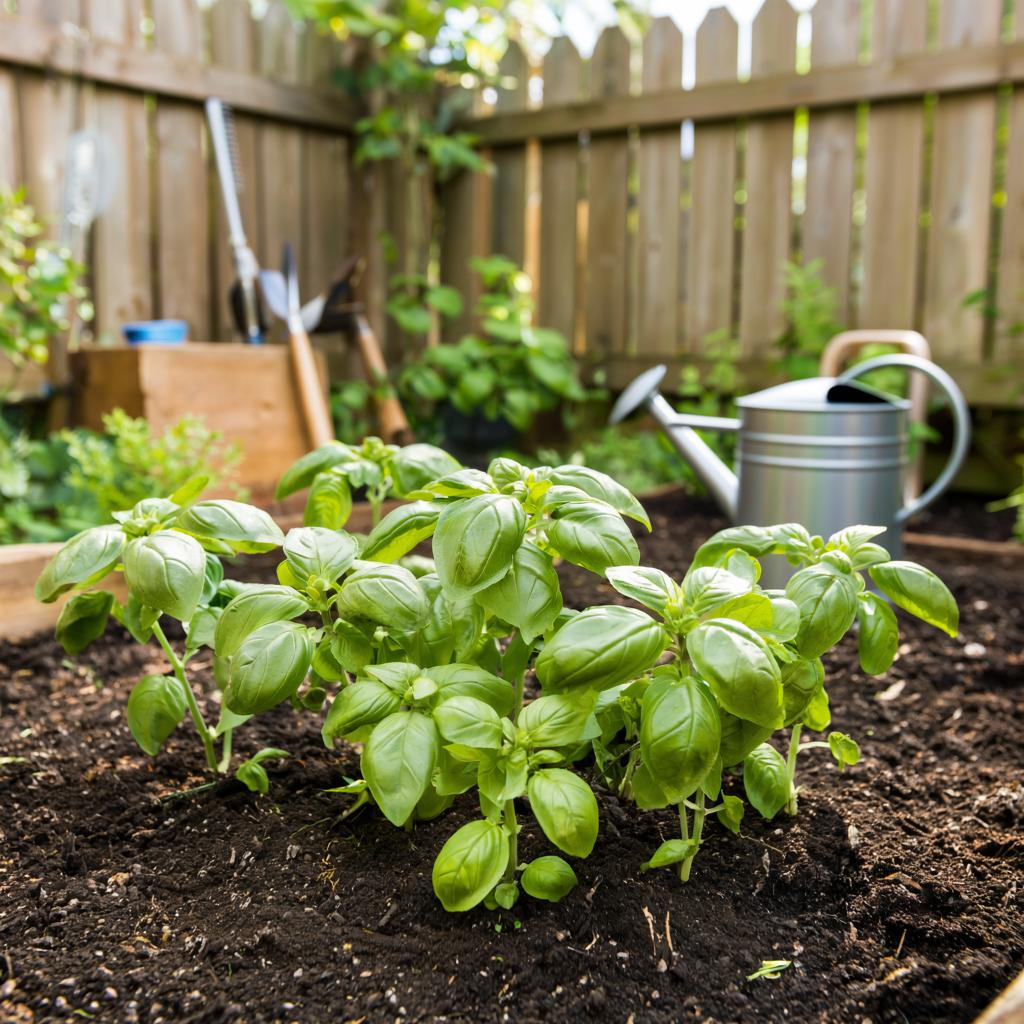 Высадка в открытый грунт — критически важный этап. Почва должна прогреться до +15°C, а температура воздуха — стабильно держаться выше +12…+15°C даже ночью. Обычно это время приходится на конец мая или начало июня. За неделю до высадки рассаду начинают закалять: выносят на улицу сначала на час, постепенно увеличивая время, приучая к солнцу и ветру. Место для базилика выбирают солнечное, защищенное от сквозняков и холодных северных ветров. Эта культура прекрасно чувствует себя на теплых, высоких грядках. Идеальные предшественники — бобовые, огурцы, кабачки, картофель.