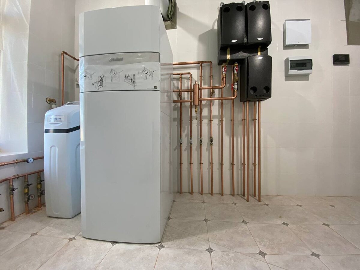 Конкурс «Лучший монтаж котельной» Работа №4 ☘️Котельная на дом 200 м2 с отдельностоящий баней. ☘️Расположение - г.Йошкар Ола ☘️Монтажник - Паймаков Иван Александрович ☘️Сердце котельной - конденсационный котёл со встроенным бойлером послойной загрузки Vaillant, применены насосные группы Meibes, насосы частотные - Grundfos. ☘️Погодозависимая автоматика Vaillant ☘️Трубопроводная система - медь пайка VIEGA. ☘️Технология твердой и мягкой пайки а так же отбортовка медных труб. ☘️Декоративные хомуты Wlraven -латунь ☘️гидравлический разделитель собственного изготовления из меди - по чертежам ProxiTherm Автор монтажа: Иван +7-987-121-26-19 #овикконкурс #лучшаякотельная #мовик