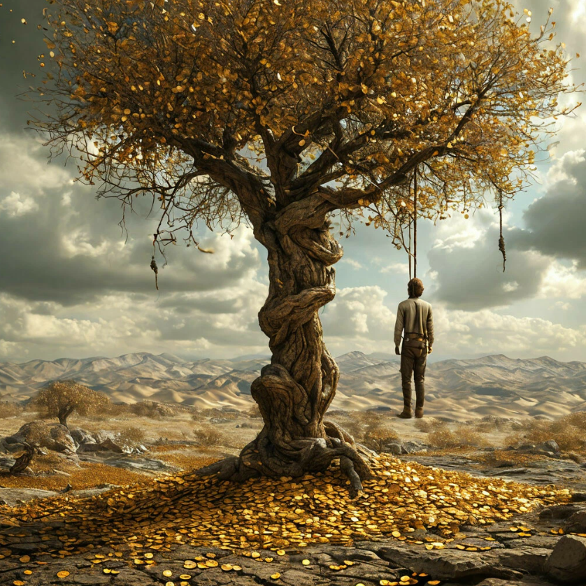 Вы держите в руках купюру. Бумага. Краска. Ничего больше. Но почему-то именно этот кусок бумаги определяет, будете ли вы сегодня есть, есть ли у вас крыша над головой, позволите ли вы себе лечение или образование. Вы верите в его ценность. Все вокруг верят. Но что, если это массовый гипноз? Что, если деньги — это всего лишь фантомная боль, которую чувствует человечество, давно ампутировавшее свою душу? Когда-то мы обменивались тем, что имело реальную ценность: едой, одеждой, помощью, знаниями. Затем мы создали символ — деньги, чтобы облегчить обмен. Но постепенно символ подменил собой реальность. Мы забыли, что значит быть сытым, счастливым, защищенным. Мы стали стремиться не к этому, а к цифрам на счету. Мы начали поклоняться бумаге, веря, что она даст нам всё. Но чем больше мы её получаем, тем больше хотим. Это не голод — это наркотическая ломка души, которая больше не помнит, чего хочет на самом деле. Богатство — это иллюзия, построенная на вере. Вере в то, что металл и бумага могут