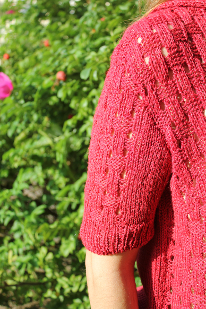 Как видно, теневой узор с дырочками у меня располагается на центральных 24-х петлях, по краям от них лицевая гладь. Вы можете вязать только лицевую гладь или только узор с дырочками. Творческий подход только приветствуется