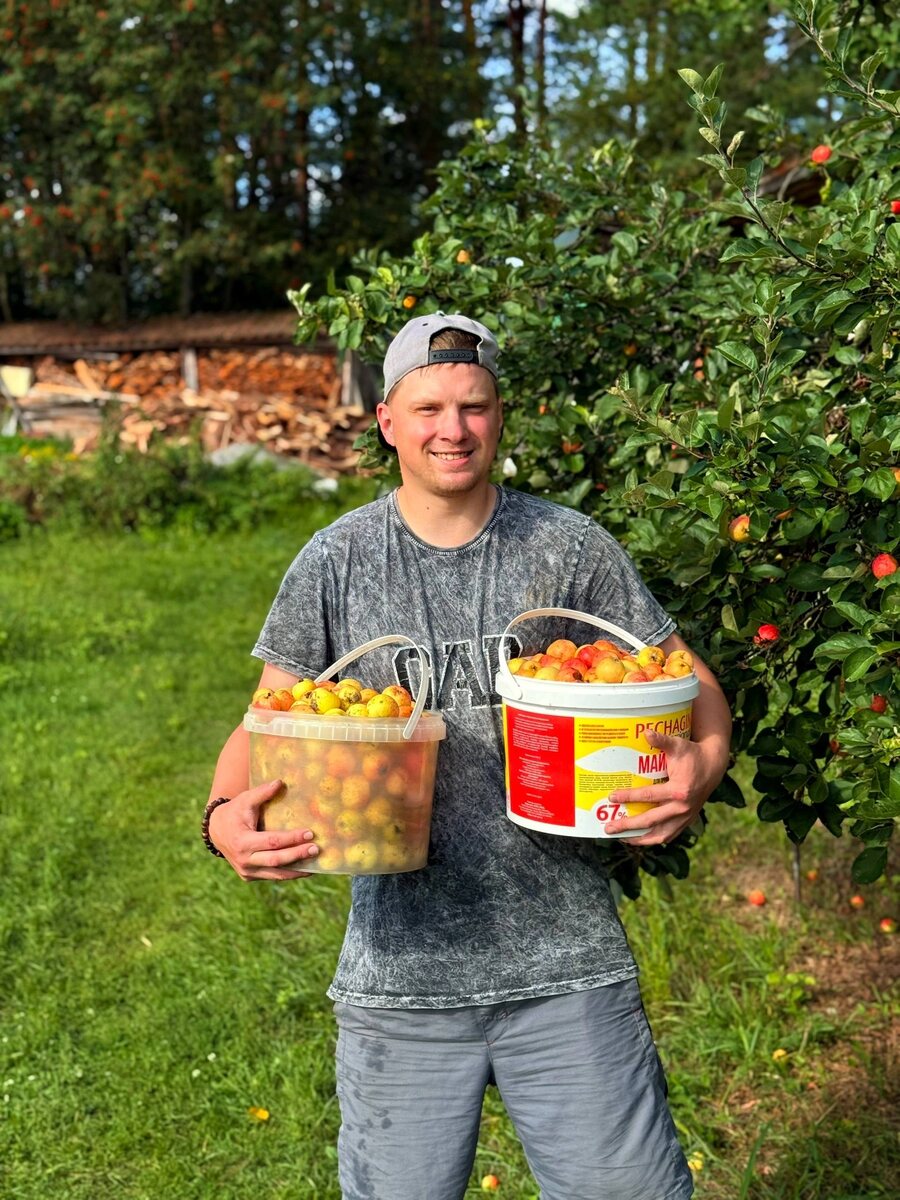 Сегодня, в последние дни отпуска, я собрал у бабушки во дворе урожай. Как раз к Яблочному Спасу поспели яблоки — ароматные, наливные, они отправятся в компоты и пироги. А вот сливы только начинают синеть, их будем снимать в начале сентября. В саду у бабули, как всегда, щедро, уютно и по-домашнему тепло. В теплице тоже радость — выросли большие, сочные перцы, такие, что приятно держать в руках. Каждый уголок двора хранит заботу и труд, даря ощущение полноты лета. А ещё я завершил работу с дедушкиными узорами: снял старую краску, зачистил и покрасил заново. Для меня это не просто дело — так я сохраняю и продолжаю его творческий путь, вплетая своё дыхание в нить памяти.