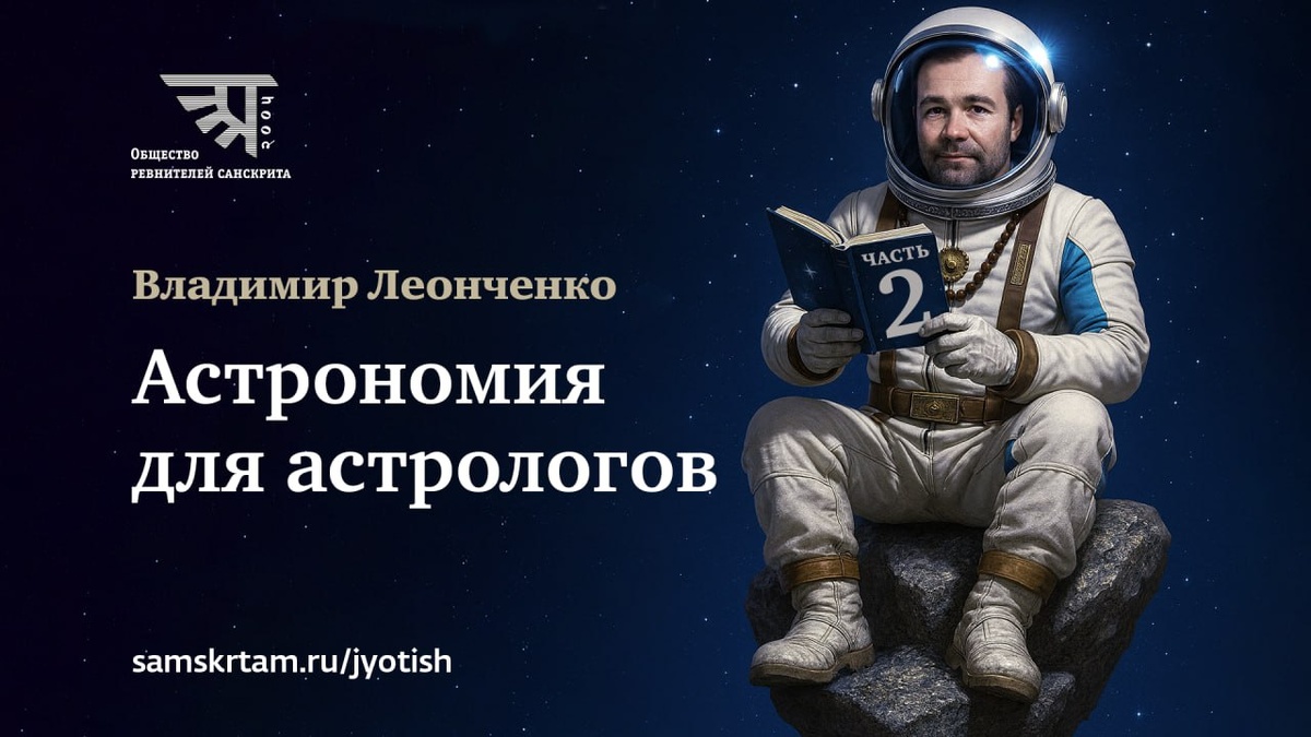 🗣 АСТРОНОМИЯ ДЛЯ АСТРОЛОГОВ (часть 2-я) Приглашаем на продолжение онлайн-курса «Астрономия для астрологов», который ведет Владимир Леонченко — санскритский компьютерный лингвист с 19-летним педагогическим стажем из русской глубинки. На первую часть курса весной пожаловали 103 ученика, чем поставили новый рекорд в «Институте исследования санскрита», заняв второе место после «Йога-сутр Патанджали» от А.В. Парибка. Видео-анонс на youtube и vkvideo. 📅 Начало курса: 8 октября 2025 🎓 Вводное занятие: 1 октября 2025 (бесплатное дополнительное занятие) ⏰ Время: по средам в 18:30, длительность четыре месяца (с двухнедельными зимними каникулами) 📍 Формат: онлайн-лекции в Zoom (курс также будет доступен в записи), 4 месяца, 16 занятий В первой части курса вы уже успели познакомиться с историей астрономии (посмотреть семь фрагментов занятий первого курса на youtube), ее терминологией, астромифологией, отражением астрономических знаний в мифах и литературе, а также со строением Солнечной с