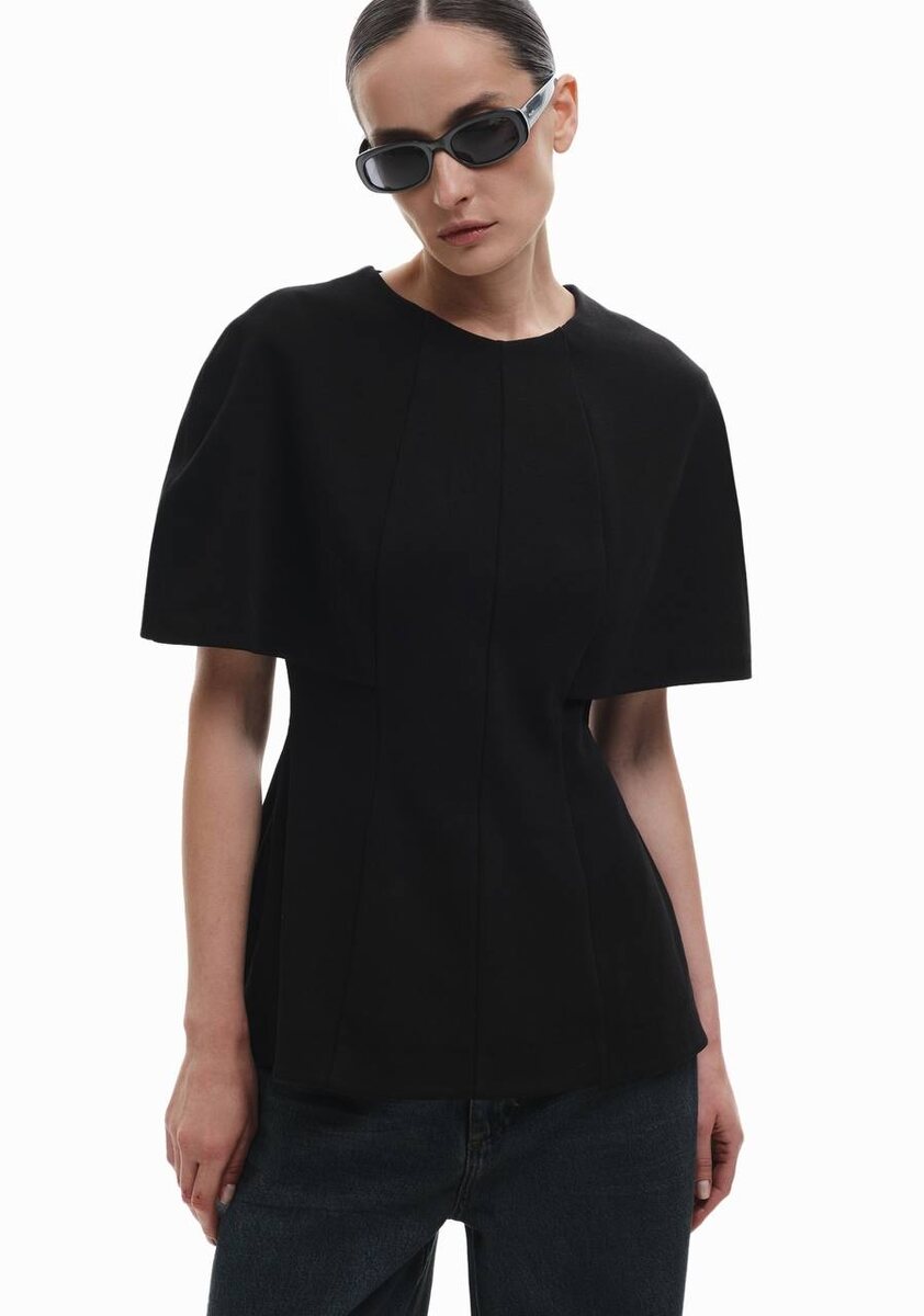 Джемпер-кейп ASYA SEMYONOVA — это тот случай, когда архитектура берет верх. Он построен на игре пропорций: плечи словно обрамлены скульптурным жестом, создающим динамику и объём, тогда как рельефные линии вытягивают силуэт, подчёркивая фигуру. В кейпе чувствуется тот самый характер бренда. Его нельзя отнести к базе или к акценту: он слишком самостоятельный.