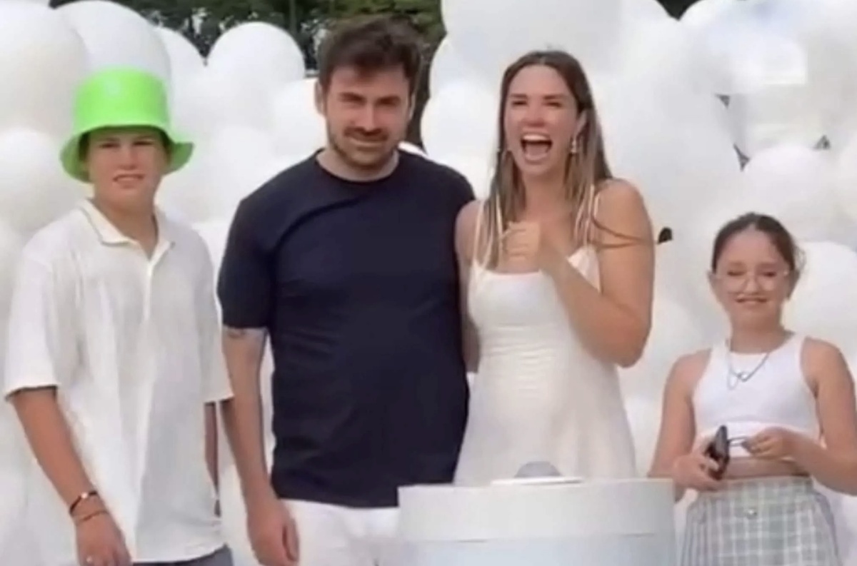 Кульминацией праздника стало нажатие большой кнопки на постаменте, на котором было написано почему-то по-английски: «Он или она». Как только Петр, Агата и ее дети надавили, позади них вырвались на свободу клубы красного, а не синего дыма. И всем стало ясно: будет девочка! Для 41-летнего Петра это будет первый в жизни брак и ребенок. Отец аккордеониста, 78-летний профессор Гнесинской музыкальной академии Юрий Петрович Дранга не сдержал слез! Впрочем, не только он.