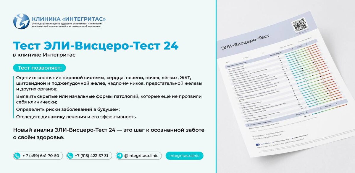 🧬 Тест ЭЛИ-Висцеро-Тест 24 теперь доступен в клинике Интегритас