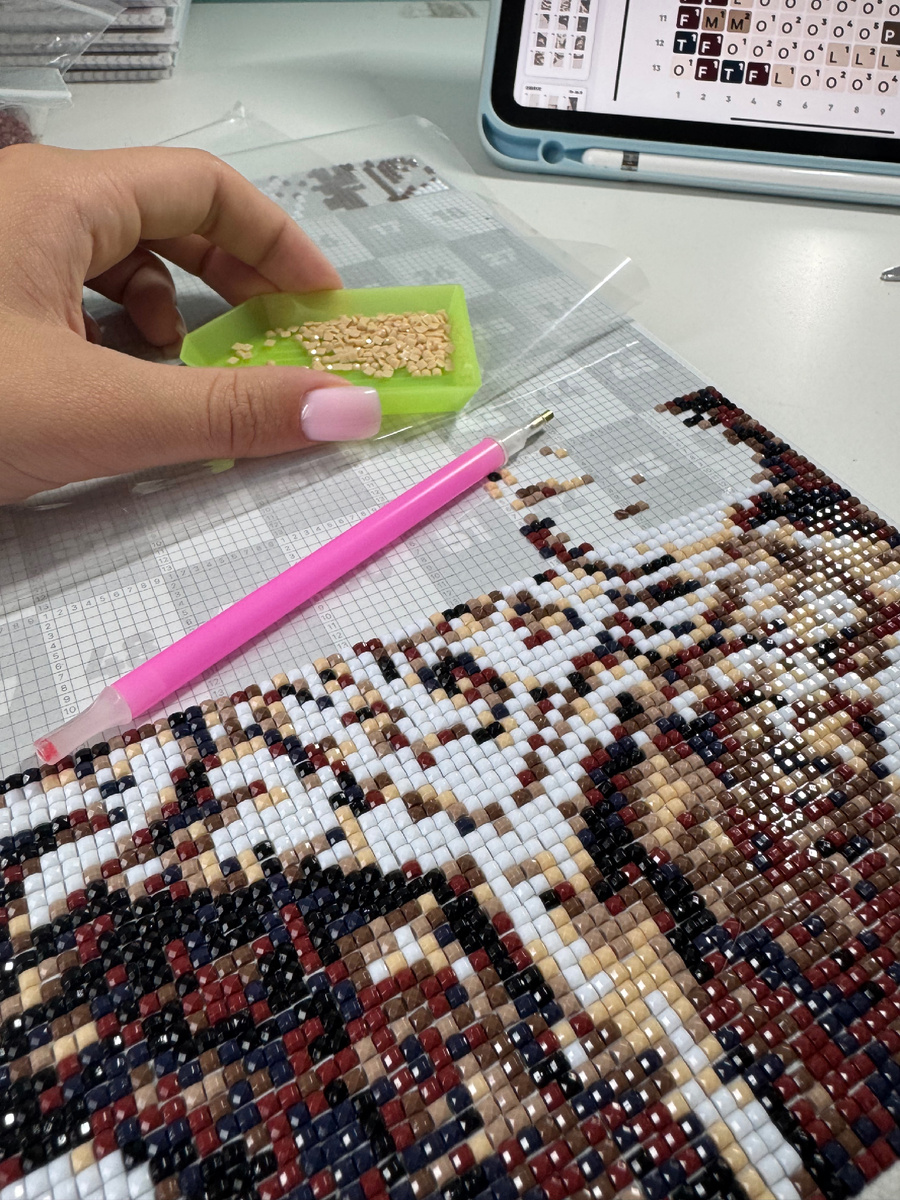 Алмазная мозаика: искусство, которое успокаивает душу Алмазная мозаика — это увлекательный вид творчества, позволяющий создавать яркие, сверкающие картины из страз. Каждая работа выглядит как настоящая драгоценность благодаря особой технике исполнения. Как собрать картину Процесс создания прост и приятен: * Выберите набор по своему вкусу. * Раскройте основу с клеевым слоем. * Используйте специальный стилус для захвата страз. * Располагайте стразы согласно схеме на холсте. * Постепенно заполняйте картину, следуя нумерации цветов. Польза для души и ума Терапевтический эффект от создания алмазной мозаики неоценим: * Помогает снять стресс и расслабиться. * Тренирует мелкую моторику рук. * Развивает внимательность и усидчивость. * Улучшает концентрацию. Магия процесса Многие отмечают, что сборка мозаики обладает гипнотическим действием. Как только вы начинаете работу, время словно останавливается. Один сеанс творчества незаметно перетекает в другой, а картина постепенно оживает по