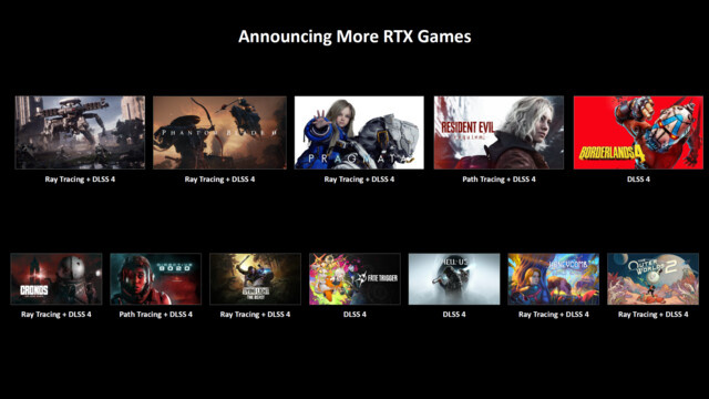 На выставке Gamescom 2025 компания NVIDIA по традиции анонсировала поддержку трассировки лучей и технологий DLSS в новых играх, сообщает ComputerBase. В компании перечислили двенадцать высоко ожидаемых и нашумевших релизов. Источник изображения: NVIDIA, ComputerBase Одной из таких игр является Borderlands 4. Технические подробности пока довольно туманны, поскольку NVIDIA не рассказала ни о чём, кроме поддержки DLSS 4. Что касается трассировки лучей, игра, вероятно, будет использовать систему освещения Lumen, или программную трассировку лучей. Аналогично для Hell is Us. Обе игры ожидаются в сентябре 2025 года. В списке NVIDIA присутствуют две игры от Capcom: для Pragmata заявлена поддержка DLSS 4 и трассировки лучей, а для Resident Evil Requiem — DLSS 4 и трассировки пути. Обе игры запланированы на 2026 год. Ожидание должны скрасить другие проекты, так Cronos: The New Dawn; Dying Light: The Beast; The Outer Worlds 2 поддерживают DLSS 4 и трассировку лучей. Для Directive 8020 заявлена по