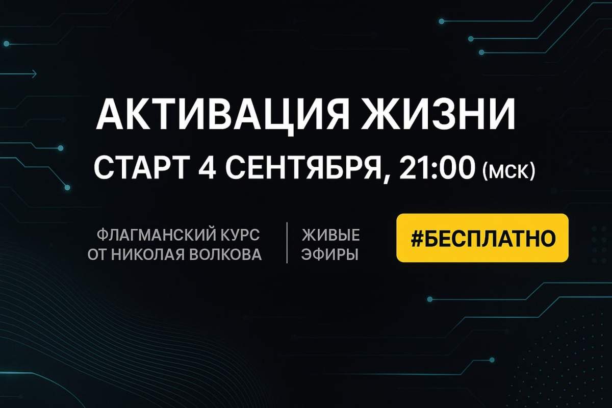 ВСЕМ СИСТЕМАМ — СТАРТ! 4 СЕНТЯБРЯ В 21:00 ⏰ Друзья! Голоса услышаны, опросы проанализированы. Ждем всех каждый четверг в 21:00 (по мск) на трансляции моего флагманского курса «АКТИВАЦИИ ЖИЗНИ»! Первый эфир — уже 4 сентября. Это точка невозврата для тех, кто готов меняться. Почему ты должен быть именно в эфире, а не посмотреть запись потом? ▪️Только здесь и сейчас. Я буду давать смыслы и работать с вами в реальном времени. Энергия живого эфира — это 80% результата. ▪️Закрытый чат для участников. Где можно будет задавать вопросы, делиться инсайтами, поддерживать друг друга и получать обратную связь. Запись — это просто видео. Эфир — это твое место в кругу единомышленников. ▪️Система, а не разрозненные советы. Ты получишь не просто информацию, а пошаговый план на 4 дня эфиров презентации курса, где каждый следующий шаг вытекает из предыдущего. Пропустишь начало — выпадешь из обоймы. 🔻 ВАЖНОЕ УТОЧНЕНИЕ: ЧТО БУДЕТ ДАЛЬШЕ? 🔻 Эти 4 мастер-класса — это мощный старт, введение в систему