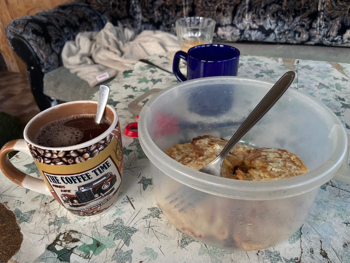 На завтрак разогрела кабачковые оладьи. Судя по обилию урожая, кушать нам их как минимум неделю.