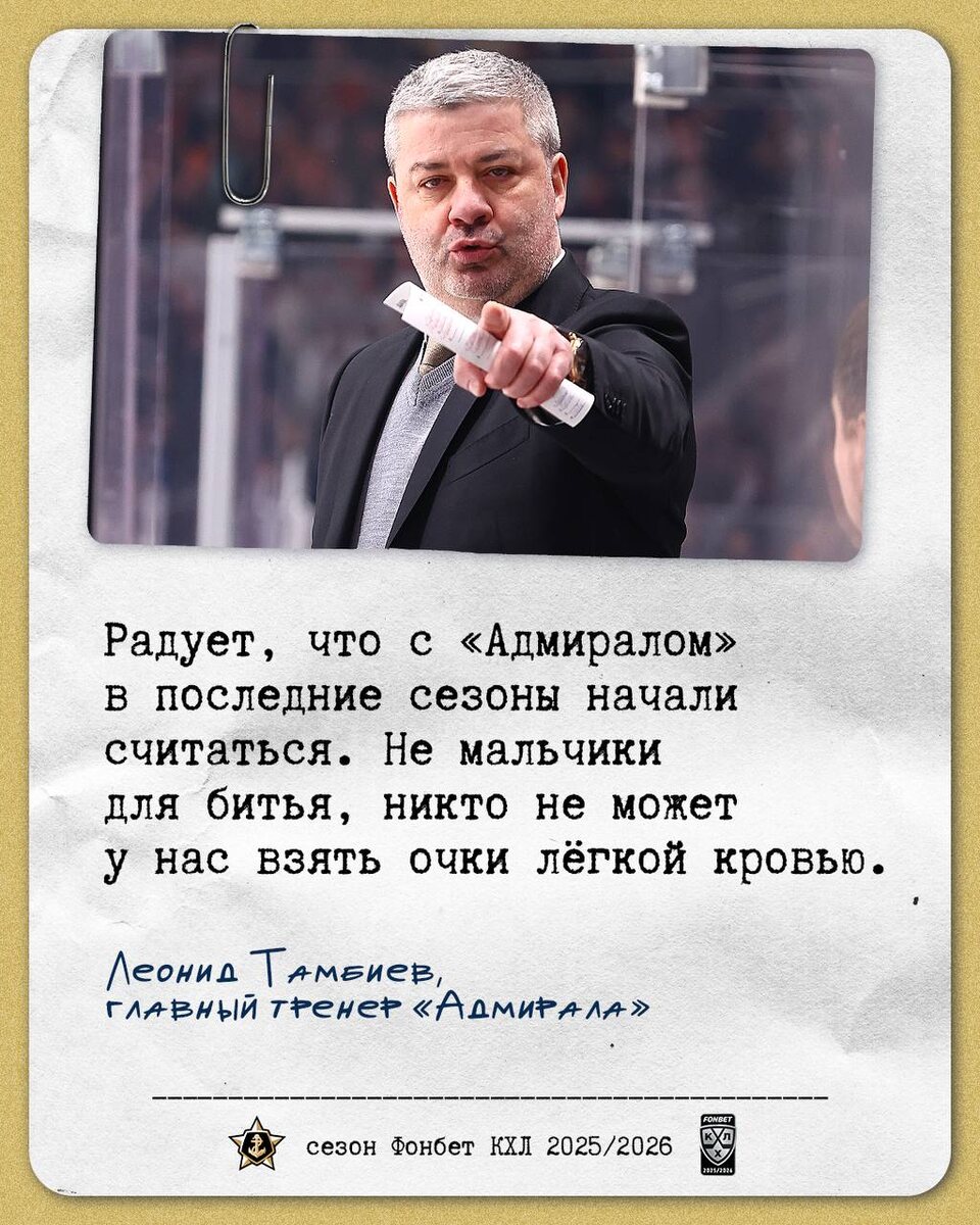 ⚓️ Леонид Тамбиев — один из главных старожилов современной КХЛ. В «Адмирале» он начнёт уже четвёртый полноценный сезон, и за это время удалось превратить его из скромной команды в ту, которую уважают и опасаются каждые соперники.