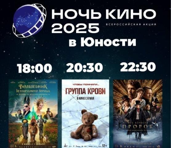 Три сеанса пройдут в рамках акции «Ночь кино». Как сообщили РИАЦ в мэрии, на бесплатные показы 23 августа приглашает Дворец молодежи «Юность»: фильмы 2025 года, собравшие миллионы зрителей, повторят бесплатно. На 10-й всероссийской акции «Ночь кино» можно будет увидеть в 18.00 сказку «Волшебник Изумрудного города. Дорога из жёлтого кирпича», в 20.30 военную драму «Группа крови», в 22.30 мюзикл «Пророк. История Александра Пушкина». Акция приурочена ко Дню российского кино, который отмечается 27 августа, и проводится при поддержке Минкультуры и РОСКИНО. Знак информационной продукции производителем не присвоен.