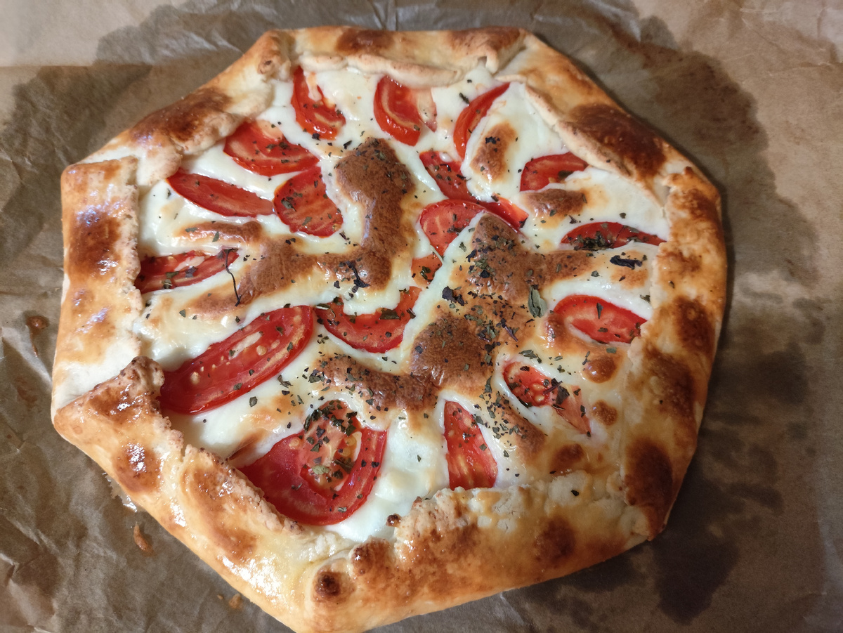 присыпаем щепоткой соли, базиликом и поливаем 1 ст.л. оливкового масла. Подворачиваем края, скрепляем их, смазываем бока желтком