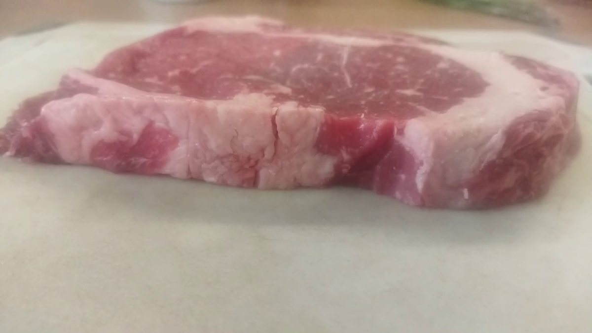 У стейка рибай есть несколько степеней прожарки. Самое главное - это не передержать стейк на сковороде, чтобы получить ту прожарку, которую вы хотите. Сегодня мы разберём пошагово сколько нужно жарить стейк рибай толщиною один сантиметр. Мясо толщиной 2,5 сантиметра и выше лучше доводить в жарочном шкафу. Но начало жарки у всех стейков одинаковое, ведь главная задача, это запечатать сок. Пожарим мы стейк примерно за семь с половиной минут. Но для начала, нам нужно подготовить мясо. Примерно за два часа до жарки, достаньте мясо из холодильника, вскройте упаковку и дайте ему дойти до комнатной температуры. Вы сами убедитесь, что стейк будет долго отдавать холод. На этот у нас при температуре 31 градус тепла в городе, ушло 75 минут. Как проверить, что стейк "согрелся?". Если нет специального кулинарного термометра, то при касании мяса, вы не должны чувствовать холод. Наш стейк рибай отдал холод, ставим сковороду. Желательно из "благородного" металла чугуний. Как вариант, с не пригарным п