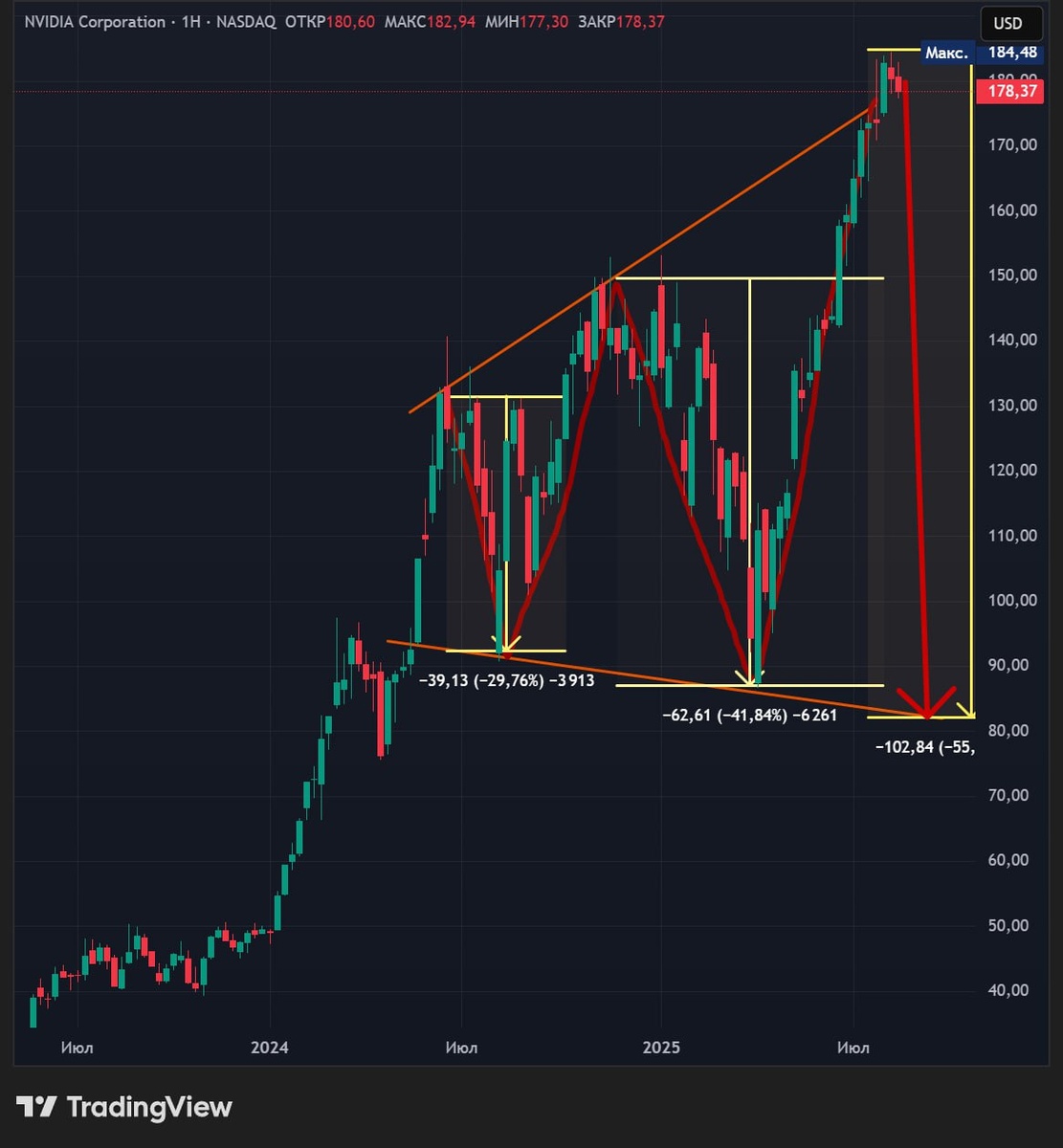 Обычно пузыри складываются на ~50% от хаев Так вижу нвидию — бумажка теперь главный системный риск для всего карточного домика Сегодня TD Cowen повысила целевую цену акций Nvidia с $140 до $235, сохранив при этом рекомендацию «Покупать» ... По сообщениям, Nvidia работает над новым ИИ-чипом для Китая на основе своей новейшей архитектуры Blackwell, который будет мощнее модели H20, которую ей в настоящее время разрешено продавать в Китае — Reuters ... Министр финансов США Бессент: NVIDIA должна будет получить лицензию для любого нового китайского чипа https://www.msn.com/en-us/money/markets/bessent-says-us-stake-in-intel-crucial-for-security-nvidia-needs-license-to-export-b30a-to-china @marketheart