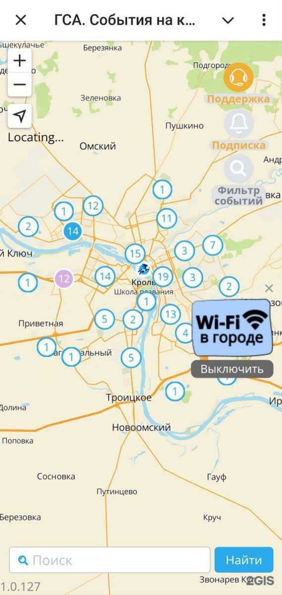 Теперь данные о 469 точках доступа можно увидеть в справочнике «2ГИС». Для поиска ближайших точек достаточно ввести в поиске «точки бесплатного Wi-Fi», и на карте появятся доступные места.