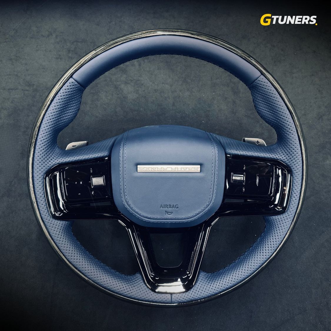Руль Range Rover Sport — сочетание премиальности и стиля 🔥 ✅ Изюминкой стал аквапринт в стиле черного дерева по всему ободу руля. ✅ Синяя кожа Nappa с элементами псевдоперфорации основа шикарного внешнего вида. ✅ Глянцевая черная рамка и сенсорная панель отвечают за современный дизайн. ✅ Хромированные подрулевые лепестки добавляют спортивных акцентов. Как вам новый руль от RRS? 👍 / 👎 #ТюнингРуля #RangeRover