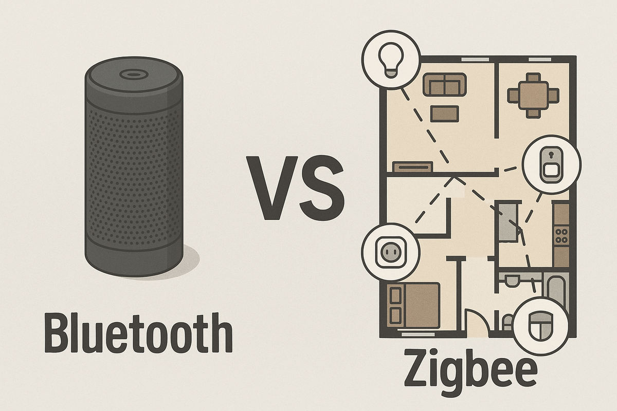 Многие задаются вопросом: «А чем Zigbee лучше Bluetooth?» Ведь у всех есть колонка или наушники, и вроде работает. Но для умного дома Bluetooth не подходит — он слишком ограничен. Bluetooth хорош для музыки, колонок и наушников — короткая дистанция, быстрая передача, всё работает. Но когда речь идёт о десятках устройств в квартире, он быстро сдаётся. Каждое подключение ест энергию, да и дальность связи ограничена. Zigbee устроен по-другому: устройства объединяются в сеть, где каждый датчик или лампочка может передавать сигнал дальше. Получается цепочка, которая покрывает весь дом, и нагрузка распределяется. Плюс Zigbee потребляет минимально — батарейки в датчиках могут жить по несколько лет. Bluetooth — это формат для гарнитуры, но не для дома. А вот Zigbee как раз и решает эти проблемы. У него радиус больше, сигнал может перепрыгивать от одного устройства к другому, образуя настоящую сеть. В итоге лампочка в спальне "передаст" команду датчику в коридоре, а тот — дальше, пока сигнал не