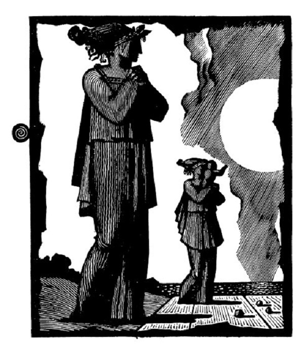 Иллюстрация к этой главе не нуждается в особых комментариях. Уходящая в какое-то чрезмерное Солнце (словно чернеющее своим светом) колесница с мертвым сыном, и горестный царь крупным планом говорят сами за себя.