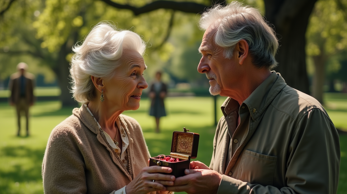 Он ушёл, а я ещё долго сидела на скамейке, сжимая в кармане рубиновое кольцо. Вечером я достала шкатулку и положила его рядом с парным. Теперь коллекция была полной. Завтра приедет Машенька, и я расскажу ей историю нашей семьи. И, может быть, историю несостоявшейся любви.