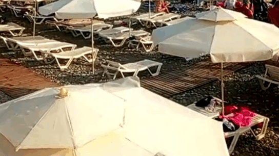 Пляжи по всему берегу. На фото выше центральная набережная района Лазаревское, первая береговая линия, шестиэтажный отель "Шторм".