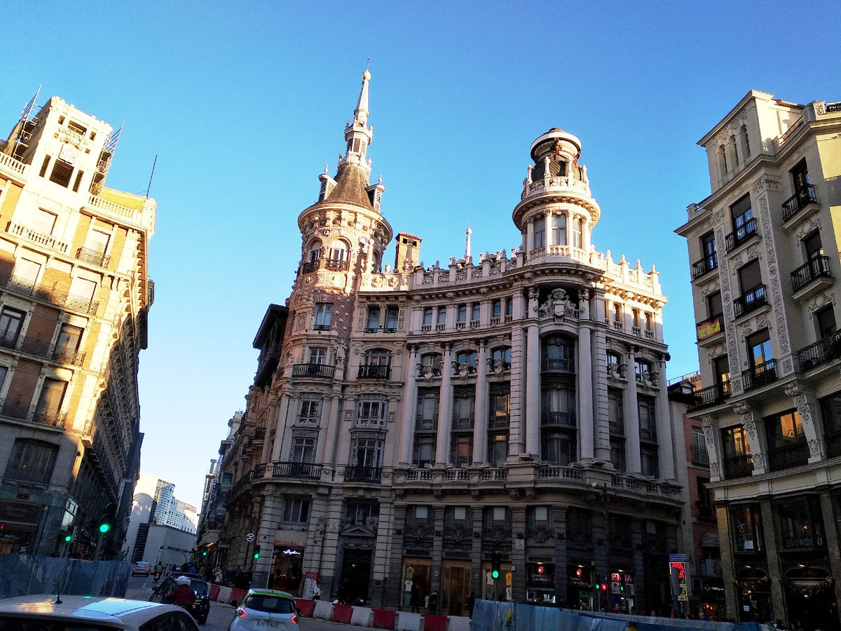 Застройка Мадрида, что сразу бросается в глаза, настолько спокойная, продуманная и гармоничная, что каких-либо резких, архитектурных доминант в ней не выявляется. Ничто здесь не рвется в небо, не спорит друг с другом и каких-то уникальных маст-хэф объектов здесь собственно то и нет. Это и позволило нам с чистой совестью заняться самым любимым делом — мы совершенно непринужденно болтались по бесчисленным улочкам города, впитывая его атмосферу и рассматривали все эти восхитительные архитектурные излишества и детали, которые делают каждое здание уникальным.