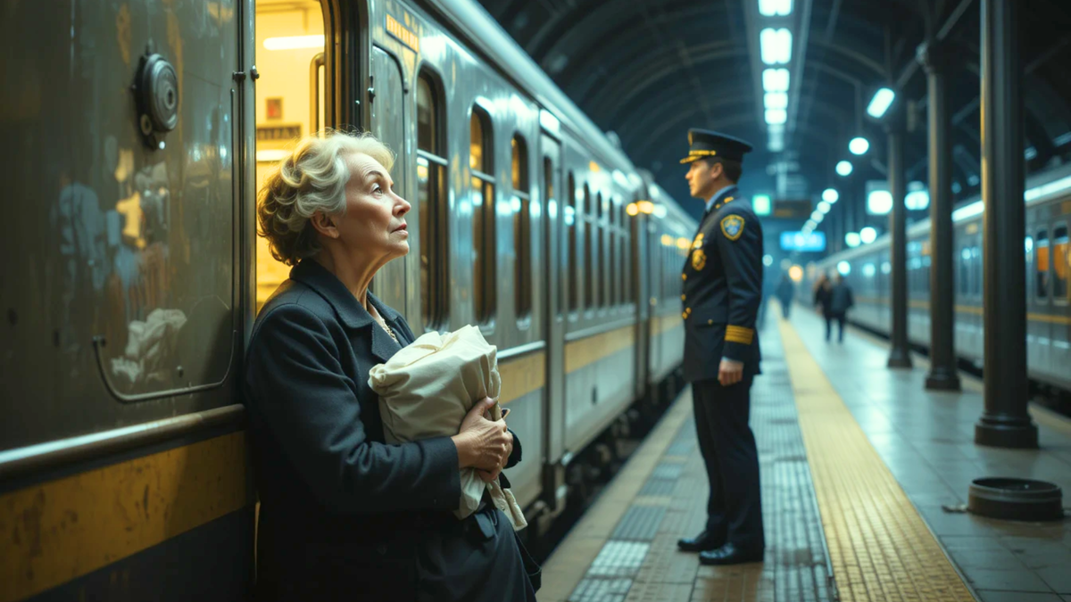Его взгляд скользнул по мне – старой, серой женщине в поношенном пальто, сжавшейся на краешке полки. И в этот момент его глаза расширились. Уверенность слетела с его лица, как маска. Рука с зажатыми билетами дрогнула. Он смотрел на меня так, будто увидел призрака.