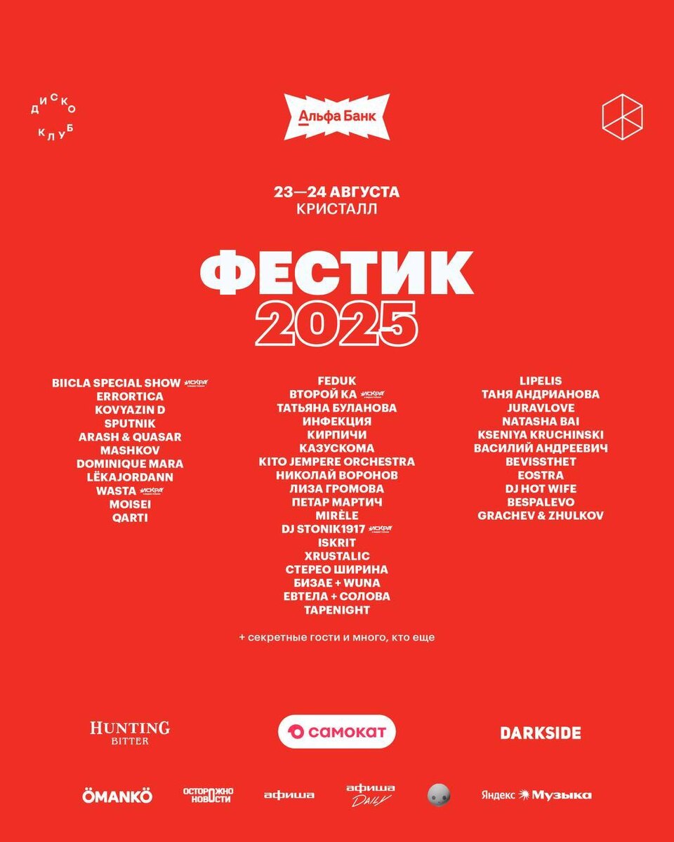 🪩 «ФЕСТИК 2025» показал финальный лайн-ап своего двухдневного фестиваля