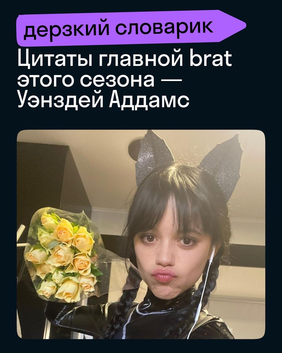 Цитаты Уэнздей, которые делают её настоящей brat 💚 С новым сезоном сериала «Уэнздей» вернулась она — королева ядовитых фразочек и взглядов, которые режут без ножа 🔪 В честь премьеры вспоминаем лучшие цитаты Уэнздей, которые доказывают, что она была brat ещё до того, как это стало трендом. Кстати, fun fact: ещё давно Charli XCX, которая прошлым летом познакомила мир со словом brat (дерзкий человек), описывала свой стиль как «смесь Уэнздей Аддамс и Baby Spice». Считаем, что не просто так 🫡 🎁 Ежегодная акция Back to school и скидки до 40% на все языки, курсы, а также индивидуальные и групповые занятия: https://go.skyeng.ru/19backtoschool008tg