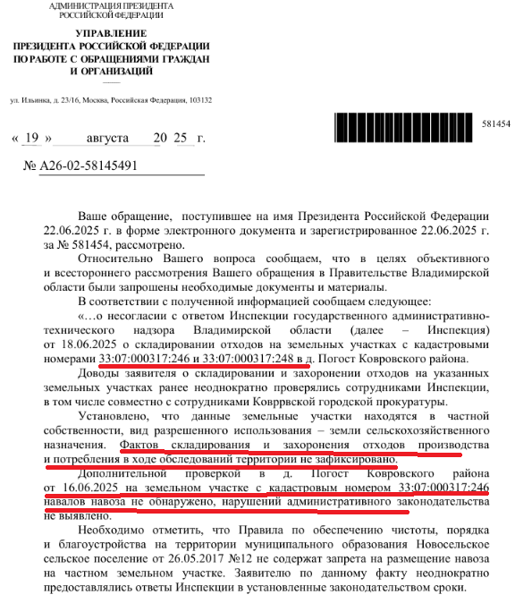 Сегодня приходит письмо из администрации президента, ну того самого, который путин, который " #гаранткоторыйничегонегарантирует", кроме проблем и прочих убытков.Вот , кстати, сообщение это: То есть, ровное такое поле, может быть чутка изъезженное техникой, но , точно, кроме картошки или луговой травки, пригодной для корма скота, ничего не должно быть, правда же? Да, по заверениям Ковровской городской прокуратуры, земельные участки, указанные администрацией, с кадастрового учета сняты еще в 2023 году... Но, вот что предстало перед взором по факту и именно сегодня А еще , слева от этого наблюдалось открытое бесконтрольное горение древесных остатков (так принято называть все что спилено, упало на землю и не стало не нужно для дальнейшего использования, даже бревна) На место были вызваны пожарные, тут же потушить не смогли, из-за риска посадить машину в огромную жижную лужу по пути, остались на объекте для окарауливания Пока пожарные проводили окарауливание, прибыл представитель и к