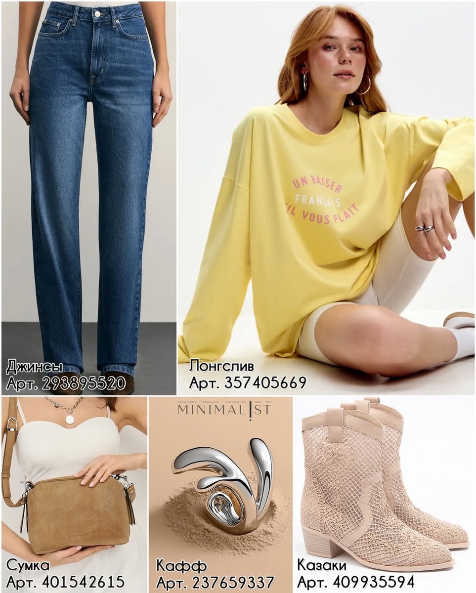 Пять готовых сетов — пять настроений: от лимонного casual до конфетного power-look и гранж-earth. Все вещи — с Wildberries, собраны по артикулам, чтобы можно было купить за один заход и завтра уже выглядеть как с доски Pinterest.