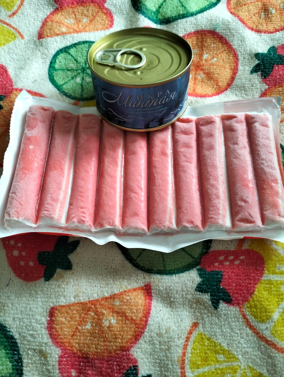 Мне понравился рецепт салата, который из имеющихся в наличии продуктов сделала Ирина Анатольевна. Рецепт я написала в своей статье: И я решила сделать такой салат, мне было интересно , какой он на вкус. В ближайшем магазине упаковок крабовых палочек по 6 штук, как в рецепте , не было , были только по 10. Икры трески тоже не было, была только икра минтая. Я взяла палочки и решила, что сделаю салат из пяти палочек, если салат мне понравится, сделаю повторно, если нет, то съем оставшиеся палочки просто так. Я подошла к салату со всей ответственностью и серьёзностью и даже достала для него из шкафа красивый салатник. Салат получился очень даже вкусный. Солить его не было необходимости, так как икра минтая была достаточно солёная . Ещё мне очень понравились плюшки, которые Ирина Анатольевна испекла с присущими ей креативом и изобретательностью с растворимым кофе из пакетиков. Я когда-нибудь тоже обязательно попробую. Когда я ходила в магазин за продуктами , то заметила , что у нас в микро