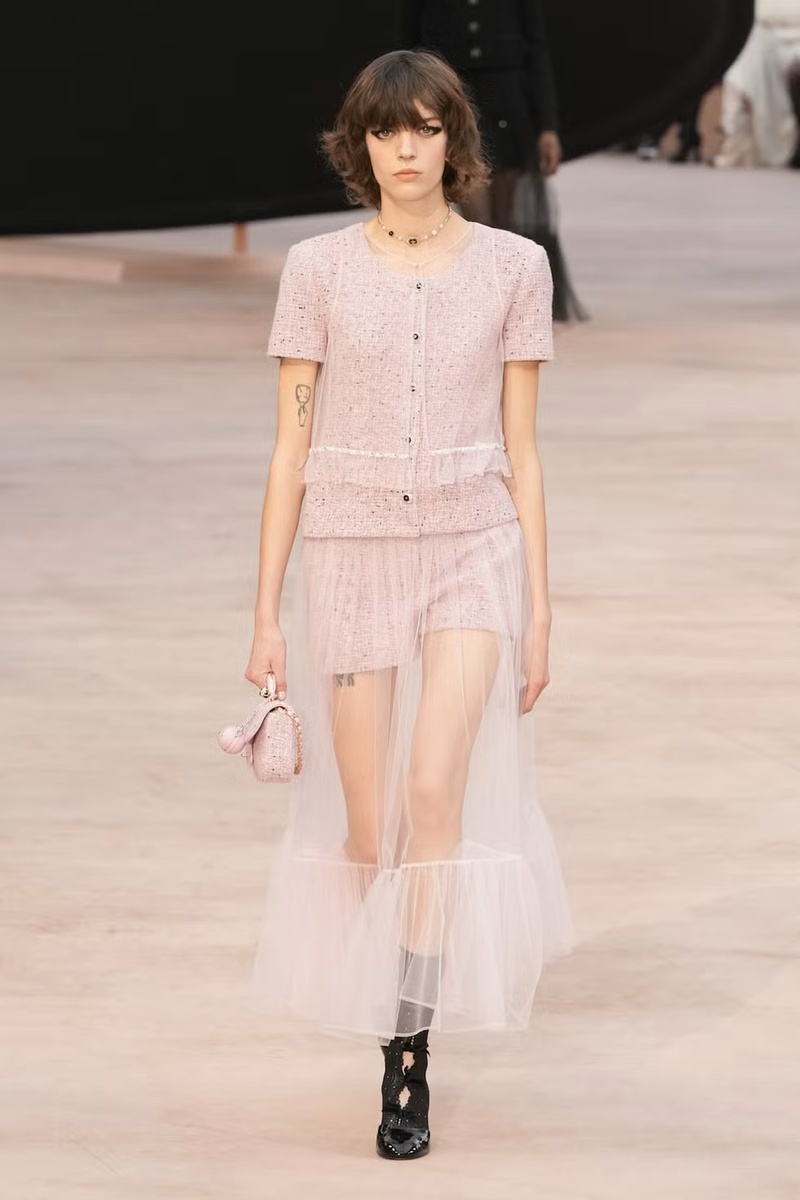 Лучшие тренды осени-зимы 2025/26 на неделях моды Возьмите на заметку самые сильные предложения на подиуме на следующий сезон. Прямые джинсы, блейзеры восьмидесятых, ботинки XXL... Это все, что получится в перерыве. Chanel подтверждает, что тюль и сетка продолжит оставаться очень модным и следующей осенью-зимой 2025/2026. На этот раз мы увидим его в самой романтичной версии, в таких цветах, как бледно-розовый, и в сочетании с твидовой одеждой. Со своей стороны, Dior ( о нем мы уже поговорили в прошлой статье https://dzen.ru/a/aJ2ijTw2ZjKX1Y43?share_to=link) придает этой туманной ткани более сказочныйподход, используя грубые тона и сочетая ее с богемными дизайнами, такими как кружевная юбка, стремясь получить «непринужденный» результат. Если весна-лето 2025 года было отмечено масляно-желтым цветом, то осень будет отмечена его более темной и сырой версией. Кроме того, он будет сопровождаться технически вдохновленной одеждой, такой как брючный костюм_ двойка : брюки и рубашка Д от Lacoste