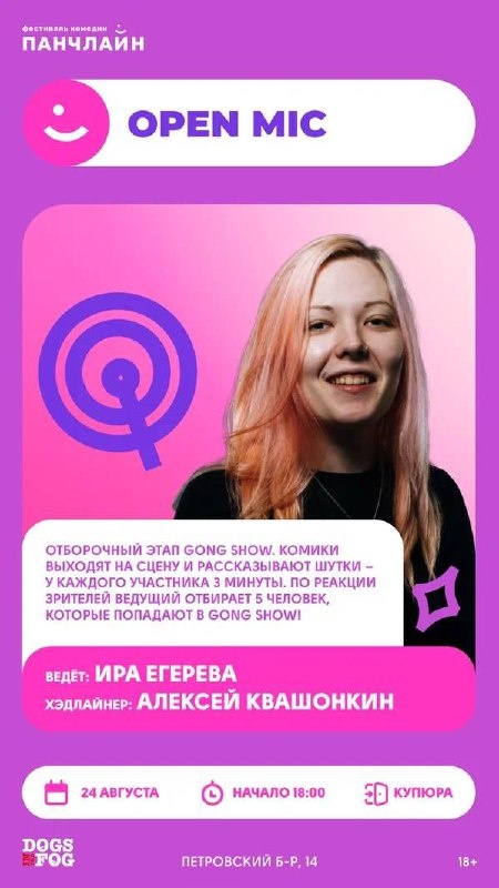 Так смотрите, будет ещё такое мероприятие. Это просто майк, по результатам которого комики будут отправляться либо в гонг, либо в депрессию. Приходите посмотреть как решаются судьбы! Ссылка на регистрацию: https://punchlinefest.timepad.ru/event/3473526/
