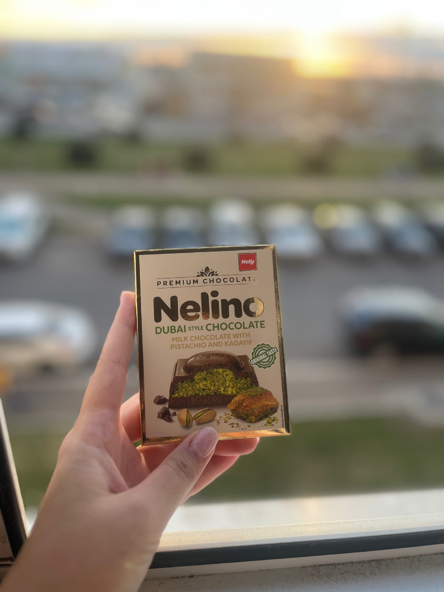 «Fix Price всегда удивляет: то завезут лимитированную коллекцию кружек, то редкие сладости. На этот раз я наткнулась на необычную плитку шоколада Nelino Dubai style с фисташкой и кадаифом (восточной сладкой выпечкой). Цена — всего 155 рублей. Сразу купила попробовать и расскажу, стоит ли своих денег».