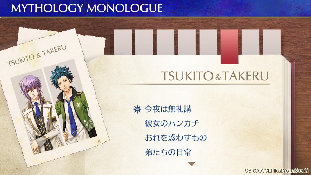 Вторая часть мифологических коротких монологов посвящена богам японского пантеона: Цукито и Такэру. Несмотря на то, что эти боги не являются моими фаворитами, их сюжеты были сделаны с душой, пропитаны любовью к родной культуре и божественным духом. Их было интересно читать. Монологи тоже оказались весьма приятными и тёплыми, отражающими искренние чувства мальчиков к главной героине. Как по мне, одни из самых проработанных.