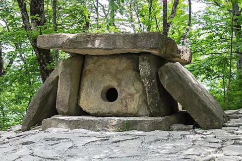 1. Погребальная камера (самая вероятная и научно обоснованная). Внутри многих дольменов по всему миру действительно находят человеческие останки.Но не целые скелеты, а разрозненные кости. Это натолкнуло на мысль, что дольмен был не могилой в нашем понимании, а чем-то вроде костницы. У многих древних народов существовал обряд вторичного захоронения: сначала тело помещали куда-то (оставляли на съедение животным, хоронили в земле), где оно лишалось плоти, а потом чистые, "очищенные" временем кости предка с почестями помещали в вечный каменный дом — дольмен. Таким образом, дольмен был родовой усыпальницей, местом, где физически хранилась память о многих поколениях. Отверстие могло служить для подношений духам предков или для "связи" с ними.