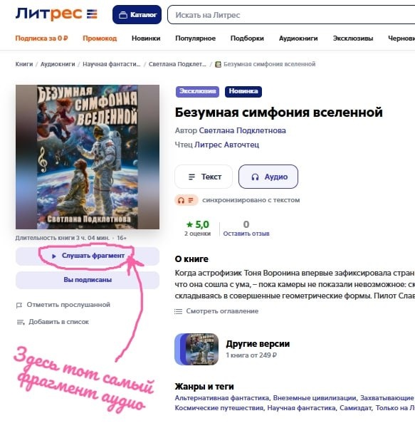 🌟 ТАКОГО Я НЕ ОЖИДАЛА! 🌟 Знаете, что бывает, когда вселенная решает сыграть с тобой в прятки? 😱 Только что обнаружила, что моя «Безумная симфония вселенной» обрела голос — и это не метафора! Аудиоверсия вышла… и звучит она просто потрясающе! 🤯 Сначала я скептически приподняла бровь, но после первых минут поняла: голос аудиоверсии умеет передавать дрожь космических струн, шёпот чёрных дыр и смех безумных богов. Спасибо Литрес за этот невероятный эксперимент — вы подарили книге второе дыхание! 🚀 Хотите услышать, как звучит безумие? 👉 Бесплатный фрагмент уже ждёт вас здесь А если после этого вам захочется… ну, скажем, случайно сломать наушники от восторга — я не виновата. 😉 P.S. Вы всё ещё верите, что за этим текстом не стоит космическая сила? 🛸 #аудиокнига #БезумнаяСимфонияВселенной #Литрес #роман_за_лето25 Соцсети Литрес Самиздат: • Telegram: vk.cc/cNzV44 • ВК: vk.com/litres_samizdat
