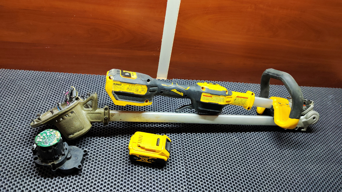 На ремонте электро-коса фирмы DeWalt. Передали на ремонт в таком виде с полу разобранным редуктором и проблемой не включается. Электродвигатель в этой косе, бесколлекторный. Раскручивает якорь три пары полевых транзисторов, управляемых драйвером DVR8320H. В процессе диагностики было обнаружено короткое замыкание на одно из трёх пар транзисторов. При снятии с платы управляющего драйвера КЗ пропало. Было принято решение заказывать новый аналогичный драйвер. Ждал его около месяца. После его замены как обычно бывает, ничего не заработало (но это не точно 😁) Всем спасибо за внимание.✋ #DeWalt #ремонтер_крымский #Армянск #Электроника #РемонтТехники