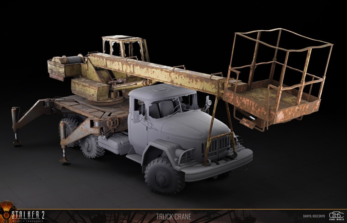 ☢️ 3D-моделлер S.T.A.L.K.E.R. 2: Сердце Чернобыля, Даниил Колесник, показал в своем профиле на Artstation некоторые модели, над которыми он работал. Это модель крана и свалка автомобильных шин.