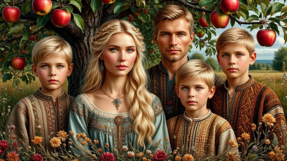 Счастлива была Мирослава в своём царстве - муж царевич, доблестный воин, был чуток и заботлив, трое подрастающих сыновей радовали добротой и умениями искусными. А в изумрудном дворцовом саду росла ароматная Яблонька фамильная. Уж много веков служила она Роду Славяночей своими плодами сочными, желания исполняющие. Не просто древо это - самая что ни на есть родная душа семейства. Благозвучно и ладно в царстве мирославином... Однако начали примечать в царстве, что древо фамильное увядать стало, день ото дня гаснуть. Плоды даёт не такие сладкие и целебные как прежде. Намерилась Мирослава Яблоньку возвратить к жизни: опрыскивала её листы и плоды настоем вязовым, срезала отжившие, гнилые веточки, корни лебедой питала да ствол подвязывала. Увы, древо семейное только сильнее чахло. Пришёл черёд к Блюдечку Волшебному обратиться: "Катись, катись, яблочко, по серебряному блюдечку, дай ответ, как помочь Яблоньке..." - Хороший путь ты нашла, Мирослава - дать деревцу покой на целый год от